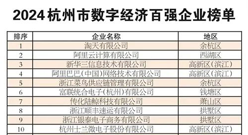 8月21日,杭州市发布2024杭州市综合百强企业榜单、2024杭州市制造业百强企业榜单、2024杭州市数字经济百强企业榜单。其中,士兰微电子位列2024年杭州市综合百强企业榜单第60位、2024杭州市制造业百强企业榜单第11位以及2024杭州市数字经济百强企业榜单第10位。